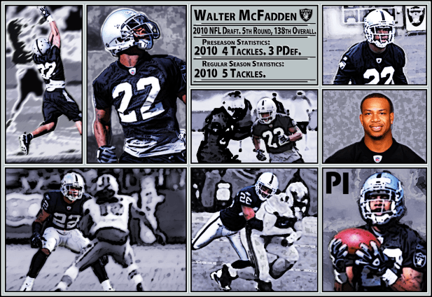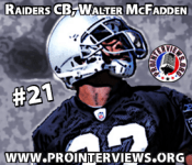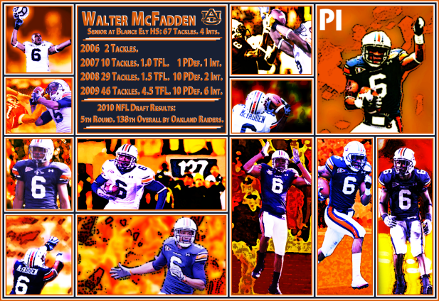 Walter McFadden played college football for Auburn University. He started off playing Special Teams, but then became the starting cornerback for the Tigers. He entered the 2010 NFL Draft, and was selected in the 5th round, 138th overall by the Oakland Raiders. This interview as conducted before the 2010 NFL season. [UPDATE: He earned some playing time during his rookie season.]