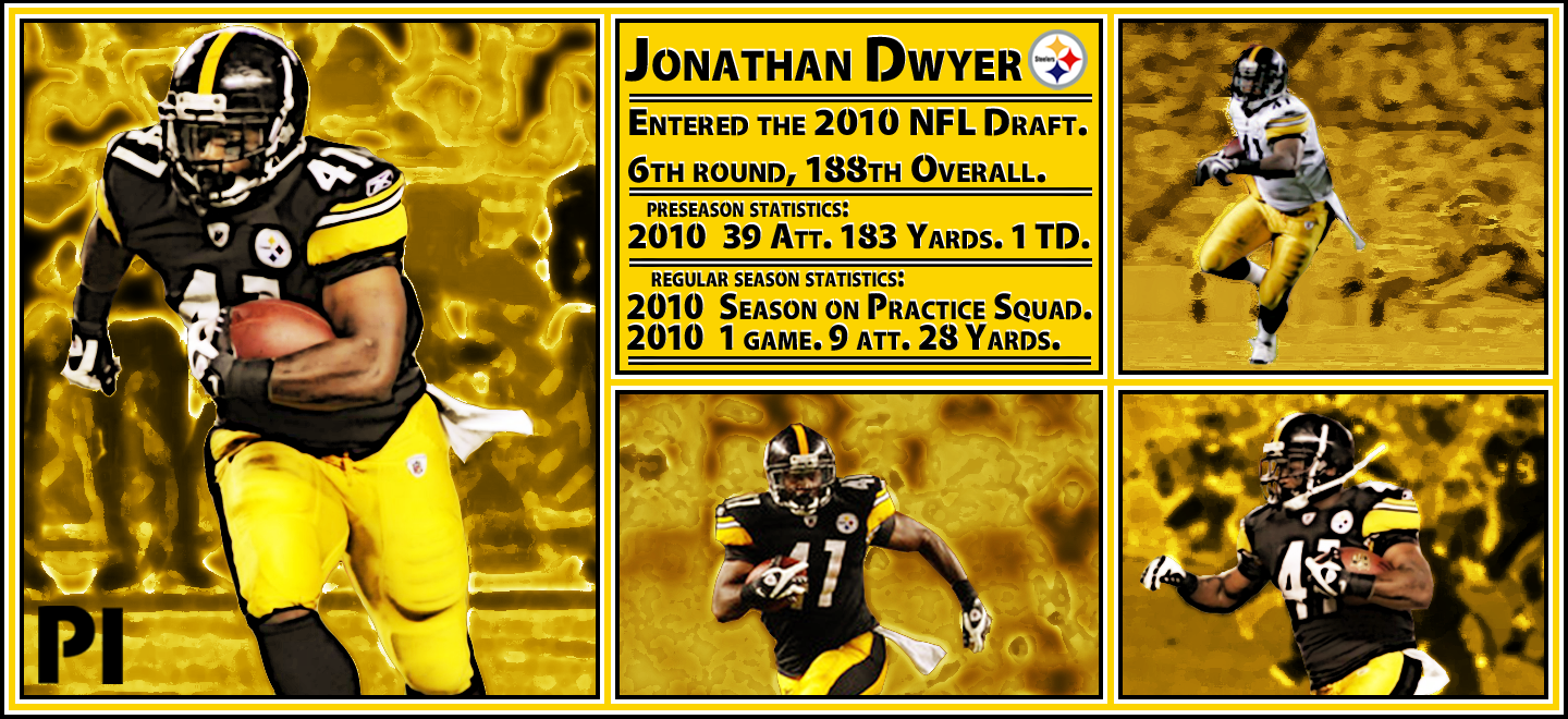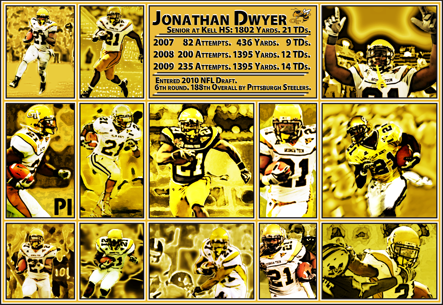 Jonathan Dwyer played college football for Georgia Tech. He was an All-American in 2008, and nominated as the ACC Player of the Year in 2008. He rushed for about 3000 yards in three years of college football. He attended the NFL Combine, after deciding to forgo his senior season, and entered the 2010 NFL Draft, and was selected in the 6th round by the Pittsburgh Steelers. This interview was conducted before the 2010 NFL season.