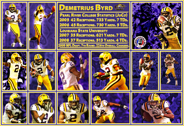 Demetrius Byrd played wide receiver for Louisiana State University. He first started playing at Pearl River Junior College and was a complete stud. He then played for LSU in 2008 and 2009 totaling over 1000 receiving yards, 11 touchdowns, and had 72 receptions. He entered the 2009 NFL Draft, but was selected in the 7th round by the San Diego Chargers. When he was drafted, he was in a coma after suffering a serious car accident. He signed with the San Diego Chargers, and was placed on the non-football injury reserve list. This interview was conducted before the 2010 NFL season.