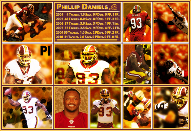 Phillip Daniels played college football at the University of Georgia. He entered the 1996 NFL Draft, and was selected by the Seattle Seahawks in the fourth round. He played for the Seahawks for four years, and then, for the Chicago Bears for four years. He signed with the Washington Redskins after that though, and was known for his pass rush ability and his special teams play. This interview was conducted as the 2010 NFL season was coming to an end. [UPDATE: PD is now the Washington Redskins’ Director of Player Development.]