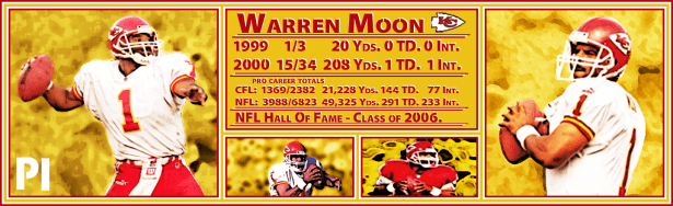 Moon : Well, I started at Houston. I chose Houston basically because it kind of reminded me of the situation, where they were a two and fourteen team, the year before I got there. We had a new coach coming in, which was my Canadian Football League coach (Hugh Campbell) that I had won five championships with. I felt like it would be a good experience that I could hep build something from the bottom and possibly make it into a winning football team. That really appealed to me, especially coming from a team that I had so much success in Canada, I wanted to go somewhere I could help build a team. I went to Houston because of that. It was tough in those early days because we didn’t have a very good team. Again, we turned things around and became a regular playoff team, and won division championships. We were never able to win the big one, the Super Bowl, but I think my biggest memory of going to Houston was, after that third year, when we finally got to the playoffs, and won the first playoff which happened to be against the Seahawks. The other team I was deciding to go between, Houston and Seattle. That was the team we beat our first playoff game, and that was probably the most memorable moment especially after going through some tough times after those first two years.