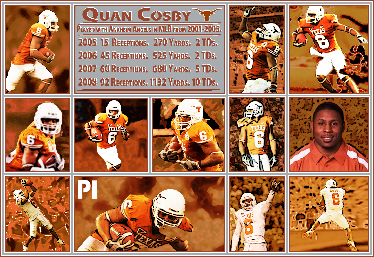 Quan Cosby grew up playing both baseball and football. After high school, he decided to pursue his dreams playing baseball and played for the Anaheim Angels from 2001 through 2005. He then went bak to college to pursue his love for football and went to the University of Texas from 2005 through 2008. He entered the 2009 NFL Draft, but didn’t get drafted. He signed with the Cincinnati Bengals, and he’s been primarily used as a kick returner and punt returner in the NFL. This interview was conducted the week before he got cut by the Denver Broncos. He ended up signing with the Indianapolis Colts.