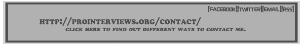 Announcement : Thank you for listening to the interview with James Lee. I hope you enjoyed it. Please check out my website www.prointerviews.org for other interviews, “LIKE” the Facebook page at www.facebook.com/ProInterviews, and follow me on twitter at www.twitter.com/ProInterviews. Thanks again for listening! Stay tuned for more, and feel free to contact me.