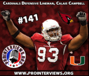 Arizona Cardinals defensive lineman, Calais Campbell is all about giving back to the community. After graduating from the University of Miami in 2007, his red-shirt junior season, he decided to leave for the NFL. He was selected in the 2nd round, 50th overall in the 2008 NFL Draft by the Cardinals. He has been very productive on and off the field. He is currently involved in a project with the United Way where you can volunteer to lower the high school dropout rate. Check out the article for our unique interview.