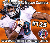 Nolan Carroll played college football at the University of Maryland. He played in 38 games, with six starts during his career. He totaled 61 tackles, and 9 pass breakups and he started only two games during his senior season because of a severe injury that he suffered. He entered the 2010 NFL Draft, and was selected in the 5th round, 145th overall by the Miami Dolphins. In his two years with the Dolphins, he has totaled 35 tackles, six pass deflections, and two interceptions. He has been a stud as a gunner on Special Teams. This interview was done after the 2011 NFL season.